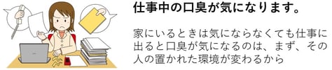 前日夜遅くまで起きていて睡眠不足、起きたらなんか口の中が変だった、など、ちょっとした引き金があったのを忘れてしまって、漠然とずっと自分は臭いんだと自分にいいきかせている状態。 ニオイは目に見えないですし、気軽に、家族や友人に打ち明けることはすごく勇気のいることです。 自分なりにいろいろ調べ出したりチャレンジしていきますが、結果が見えないので、全く自信が持てない状態になっていきます。 実は自分の口臭のつらさを理解してくれる人が必要になっているのです。 家族にも友人にも言えないで、でも何とかしたい、当院の受診者はほとんどそんな状況で来院されます。 当院は、言えなかった悩みを唯一言える場所で、その悩みを打ち明けることからまず治療は始まります。